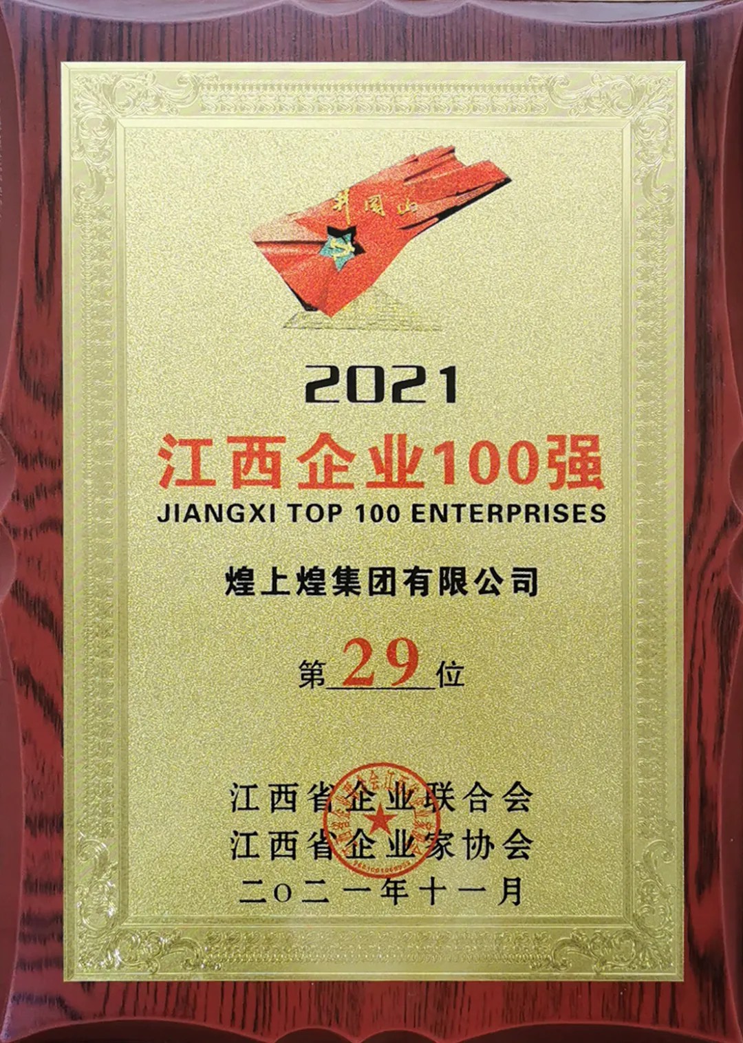 12月15日,江西省企業(yè)聯(lián)合會、江西省企業(yè)家協(xié)會在南昌舉辦2021江西企業(yè)100強(qiáng)新聞發(fā)布會。會上發(fā)布了江西100強(qiáng)榜單,煌上煌集團(tuán)有限公司榮登榜單第29位。