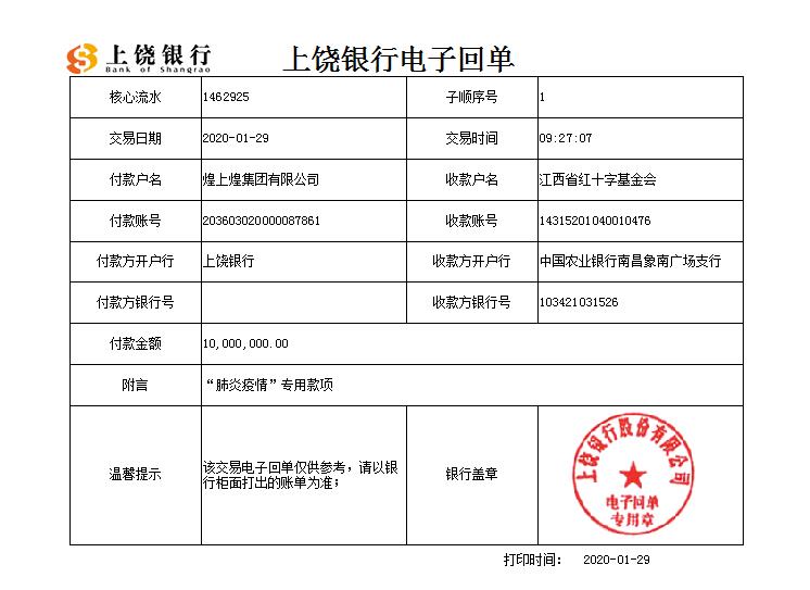 煌上煌集團捐款人民幣1000萬力抗肺炎疫情