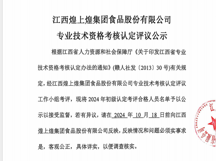 根據(jù)南昌縣人力資源和社會保障局發(fā)布《關(guān)于做好全縣2024年初級專業(yè)技術(shù)資格考核認(rèn)定工作的通知》(南人社發(fā)[2024]30號)文件精神,經(jīng)公司研...