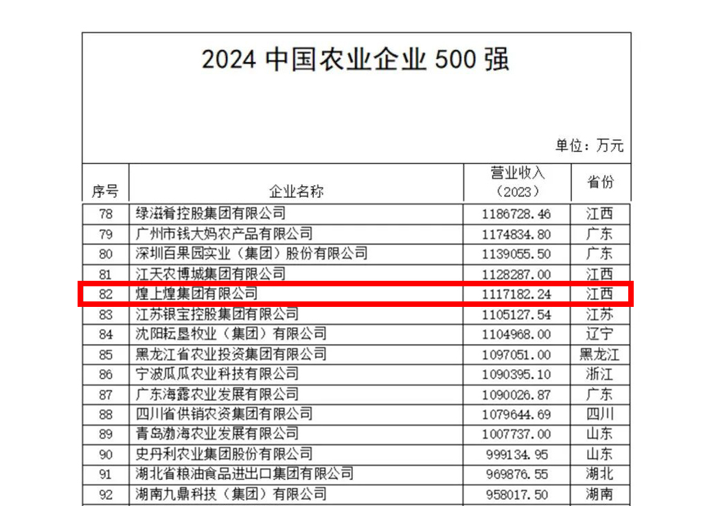 12月11日,農(nóng)民日報社發(fā)布2024中國農(nóng)業(yè)企業(yè)500強(qiáng)榜單。榜單聚集發(fā)布糧油、畜牧、奶業(yè)、水產(chǎn)、食品、流通、農(nóng)資等領(lǐng)域頭部企業(yè),煌上煌集團(tuán)...