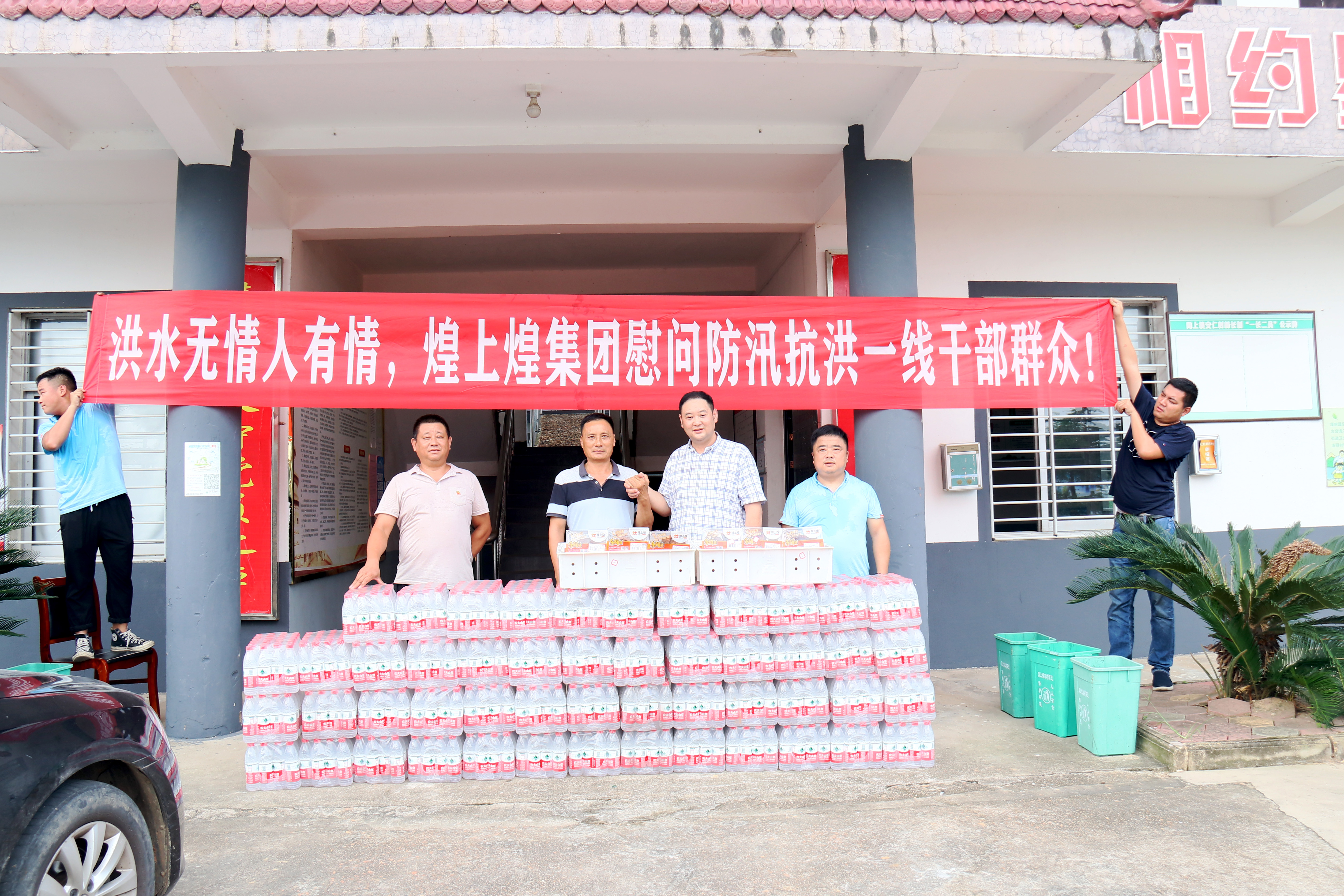 7月15日,煌上煌集團(tuán)黨委副書記、股份公司副董事長褚劍組織帶領(lǐng)公司員工、加盟商,前往防汛抗洪一線開展防汛慰問活動,為奮戰(zhàn)在一線的防汛人員送上礦泉水、煌上煌樂鮮裝等價(jià)值近5萬元的慰問物資。